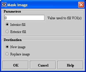 If selected, changes the intensity values of the region bound by the VOIs to the intensity value indicated in Value used to fill VOI(s).