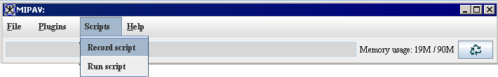 2 To create a script using the main MIPAV menu, click Scripts > Record Script in the MIPAV window and simply start recording. See Figure 6.