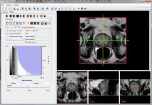 We use the semi-automatic segmentation dialog to segment the MRI prostate image. Before proceeding, please, make sure you open 3 orthogonal prostate images with VOIs - img_ax_83.xml and voi_ax_83.xml, img_sag_83.xml and voi_ax_sag.xml, and img_cor_83.xml and voi_cor_83.xml.