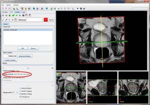 This page contains instructions on how to perform MRI prostate segmentation and surface reconstruction in MIPAV. The algorithm facilities the validation of multi-parametric MRI with histopathology slides from radical prostatectomy specimens and targeted biopsy specimens. It employs the technique that combines image processing and computer aided design to construct a high resolution 3D prostate surface from MRI images in three orthogonal views with non-isotropic voxel resolution.