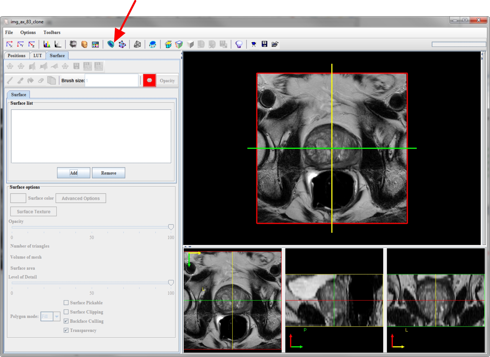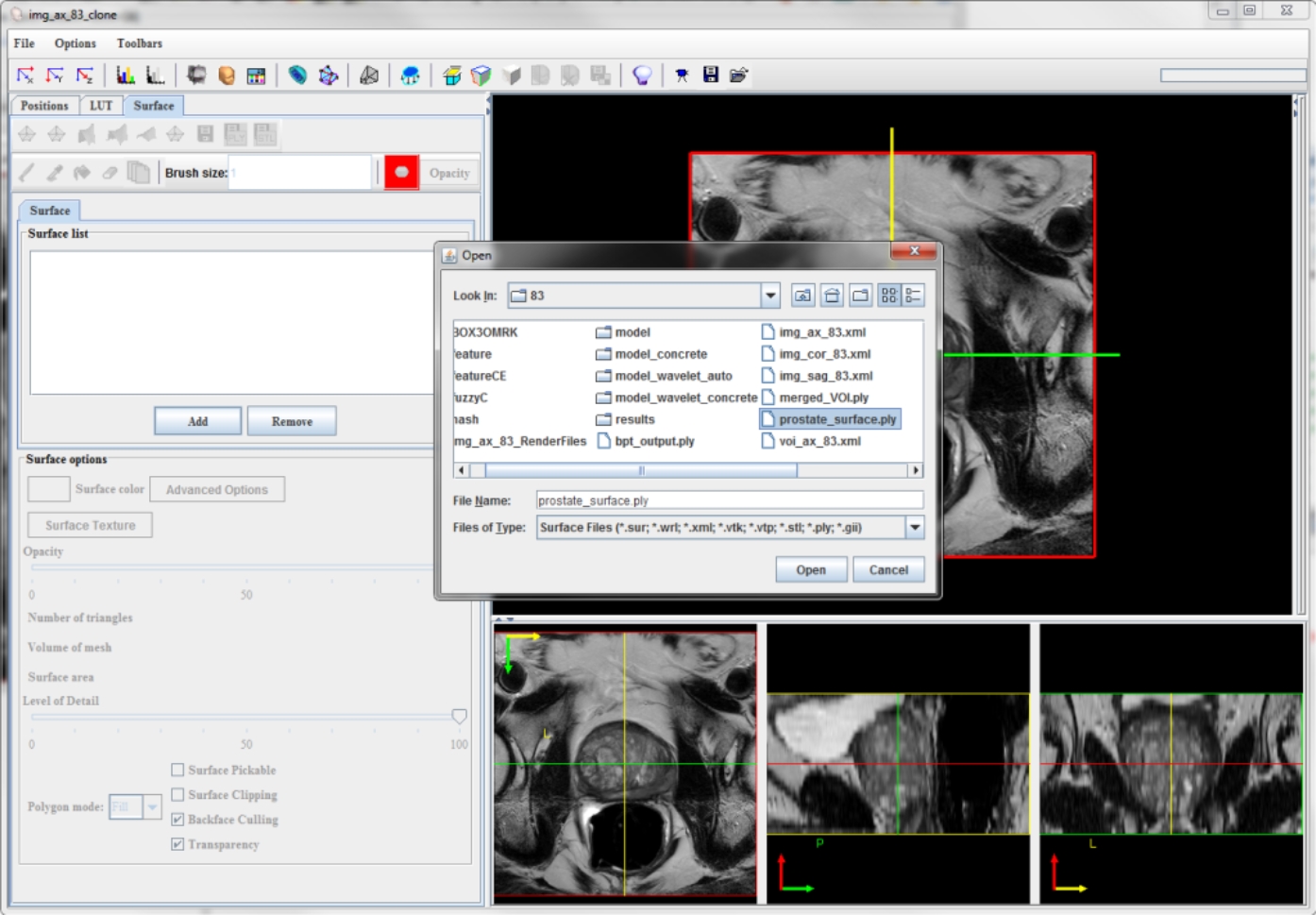 Note: in MIPAV all axial, sagittal, and coronal VOIs are saved in DICOM space, therefore the final generated prostate surface is also saved in DICOM space.