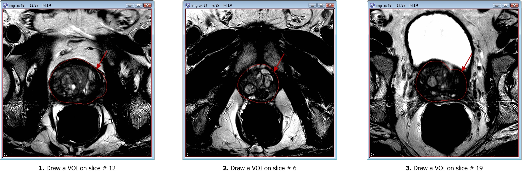 To delineate prostate VOIs, use the Polygon/Polyline VOI tool