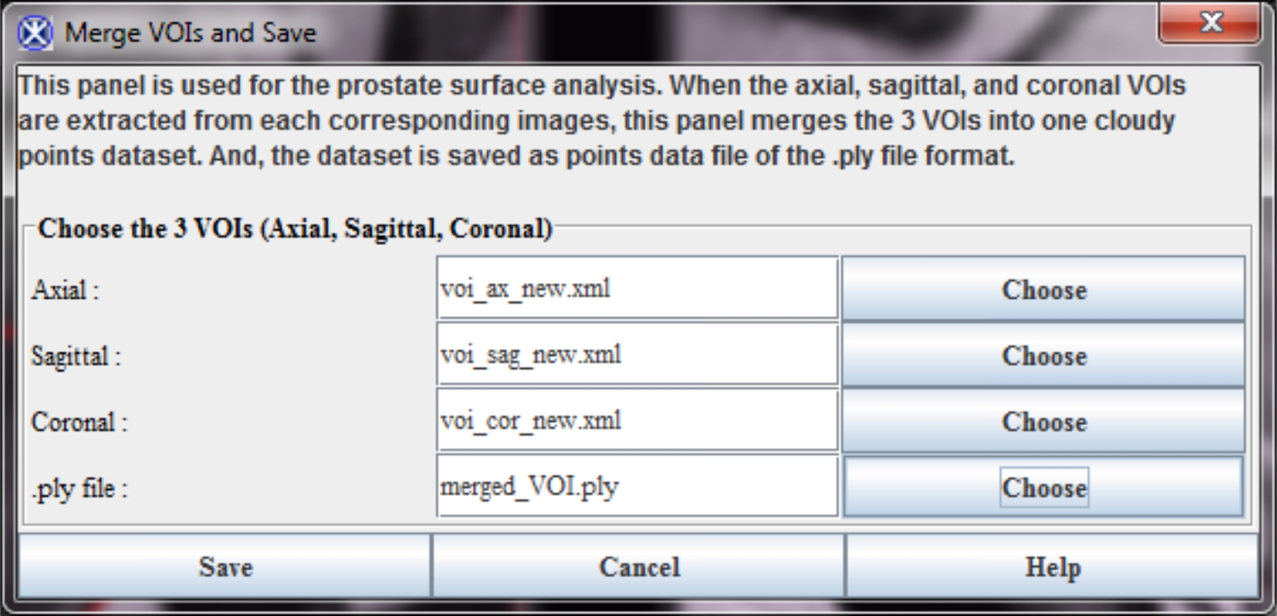 To form a cloud points set used for surface reconstruction, we need to merge 3 VOIs (axial, coronal and sagittal) in DICOM space.