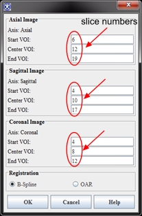 Note that the drawn VOIs slice numbers are automatically populated in the dialog box.