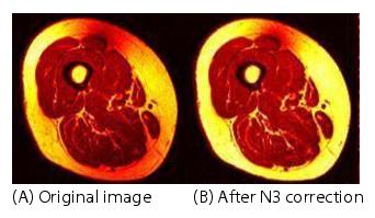Figure 3 shows an original image A and the image B produced from using the best N3 paratmeters: