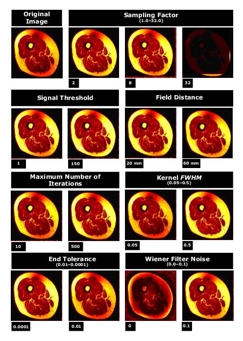 Figure 4 shows an original image and the effect of different parameters used in the Inhomogeneity N3 Correction algorithm on the image.