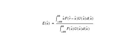 Then taking the log of all parameters, we are left with ^u = log(u) and ^f=log(f), both of which we assume to be independent or uncorrected random variables of probability densities U, V, and F. Then substituting these variables back into equation 1 and converting the equation of distributions into one of probability densities, the distribution of their sum turns into the following convolution, see equation 2