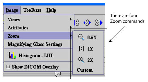 In the MIPAV window, there are three methods for magnifying or minifying images: