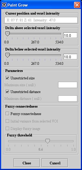 Delta below selected voxel intensity
